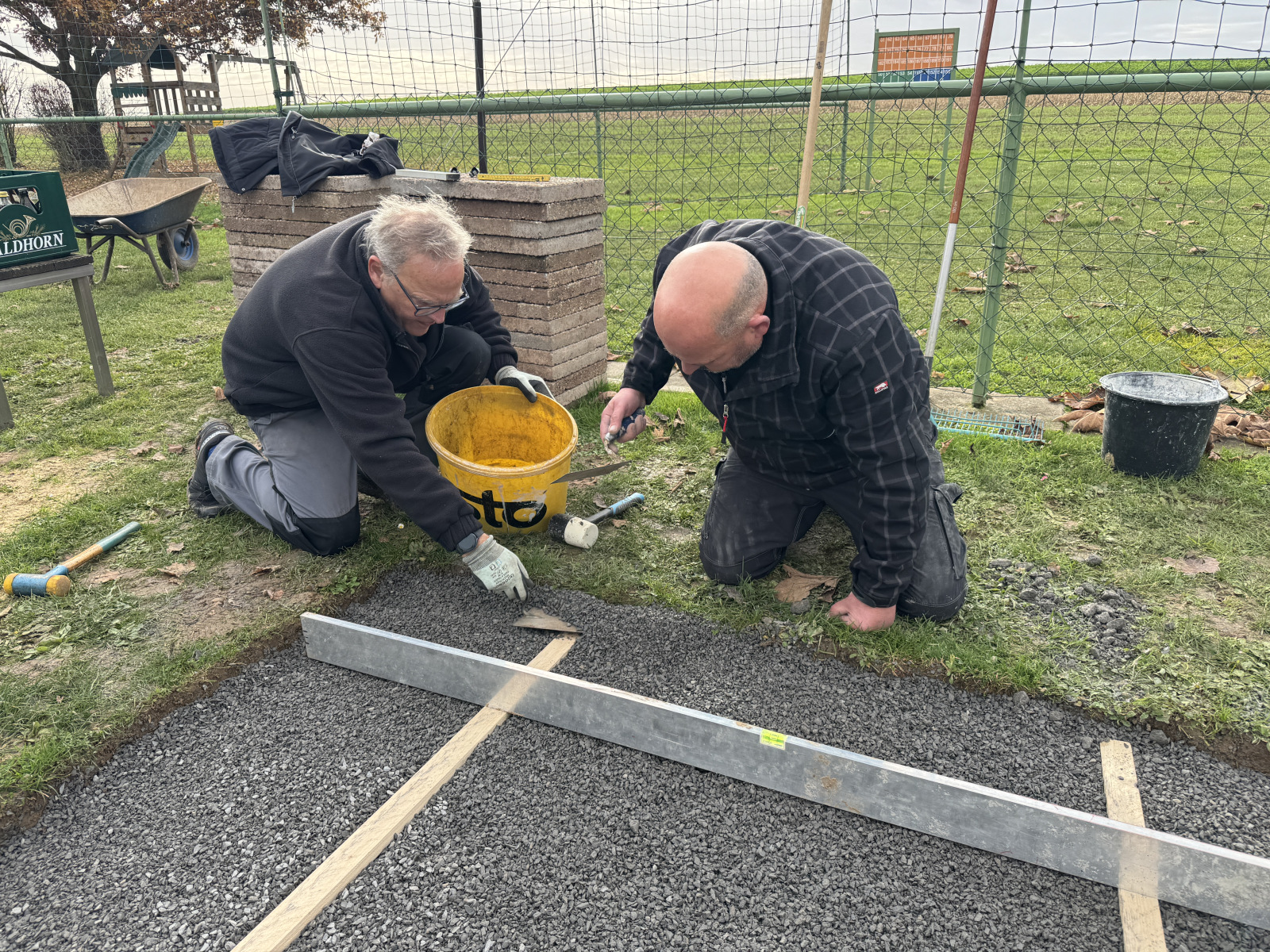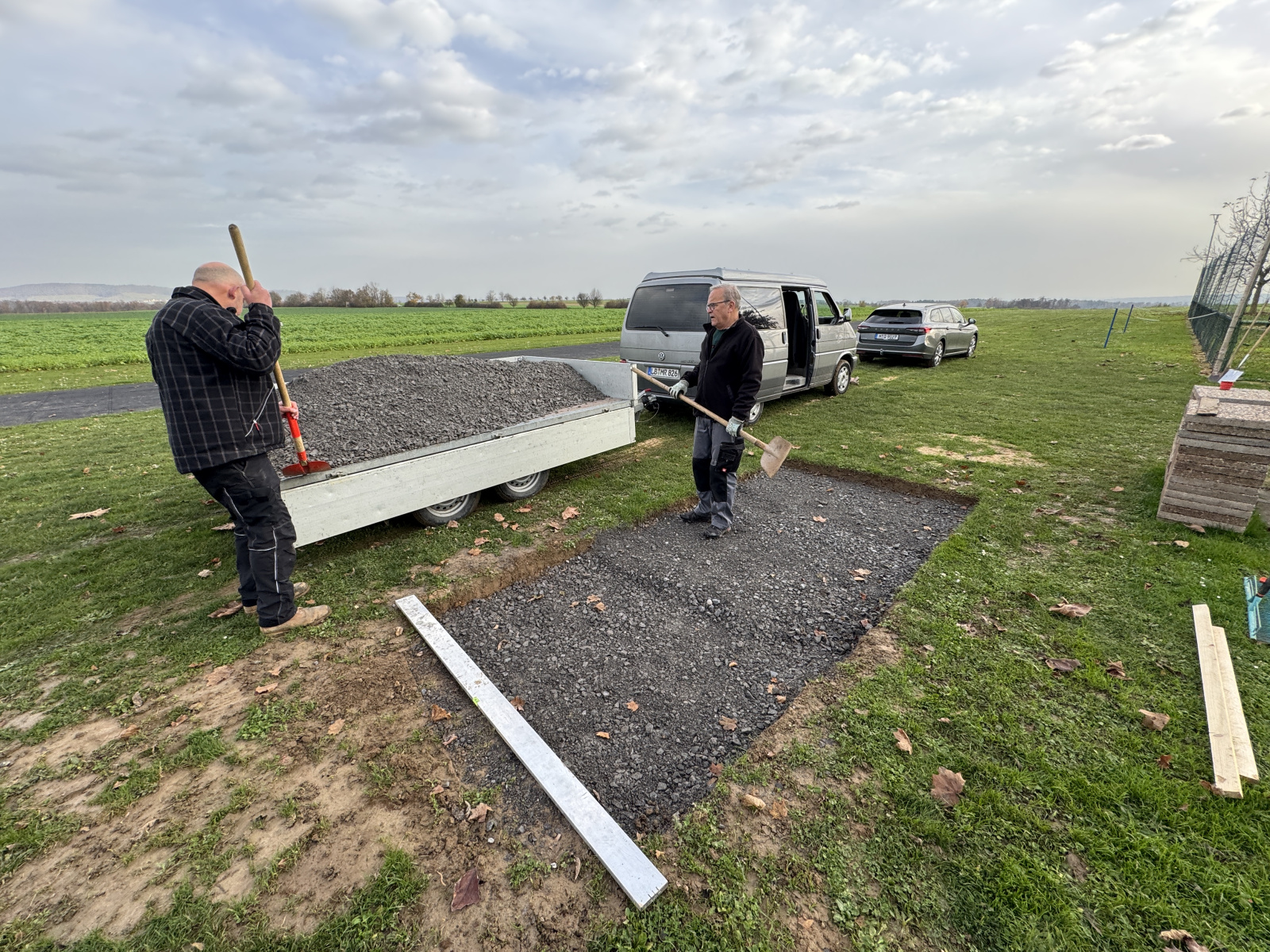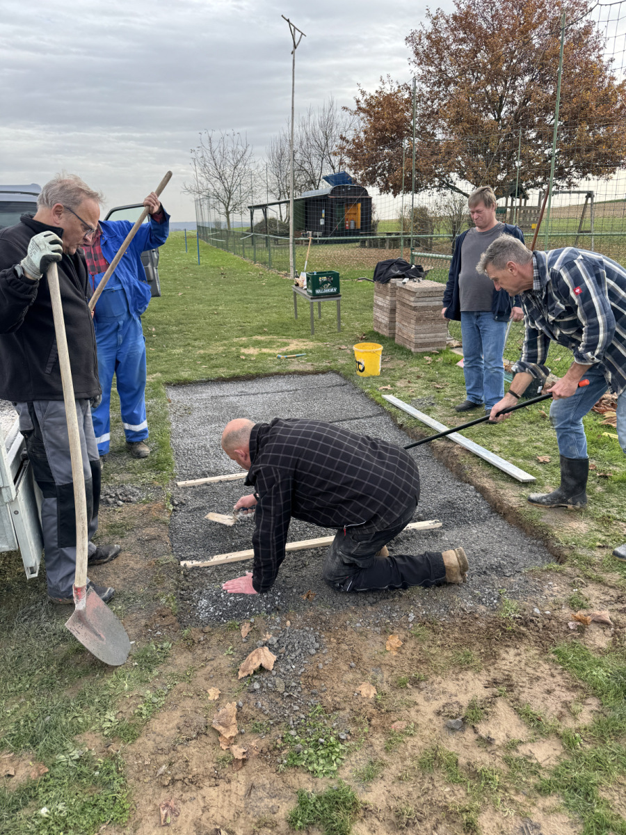 Ein wichtiger Schwerpunkt war die Ausbesserung der Schlaglöcher entlang der Zufahrtswege. Durch Regen und starke Nutzung hatten sich mehrfach tiefe Mulden gebildet, die nun mit Schotter aufgefüllt und sorgfältig verdichtet wurden. Dank des engagierten Einsatzes sind die Wege wieder perfekt befahrbar und bieten eine sichere Zufahrt rund um das Gelände für alle Mitglieder, Spaziergänger, Radfahrer, Reiter und Besucher.