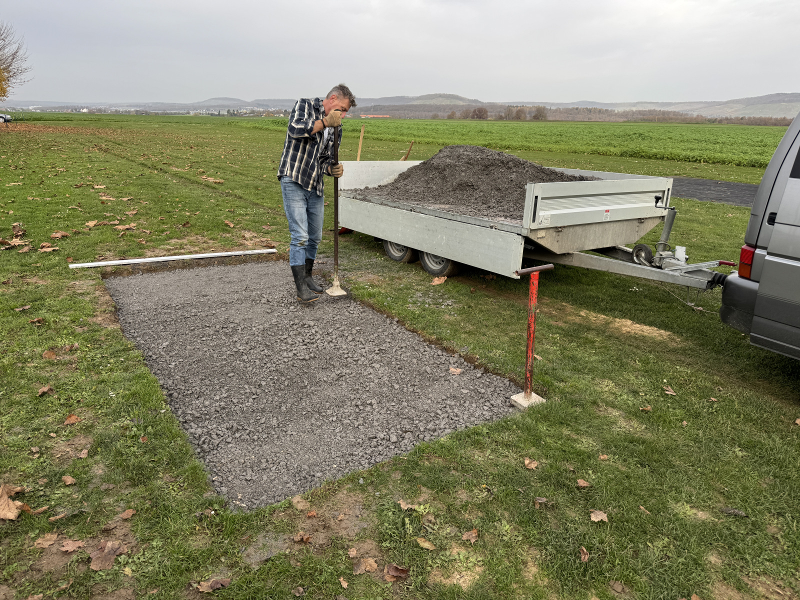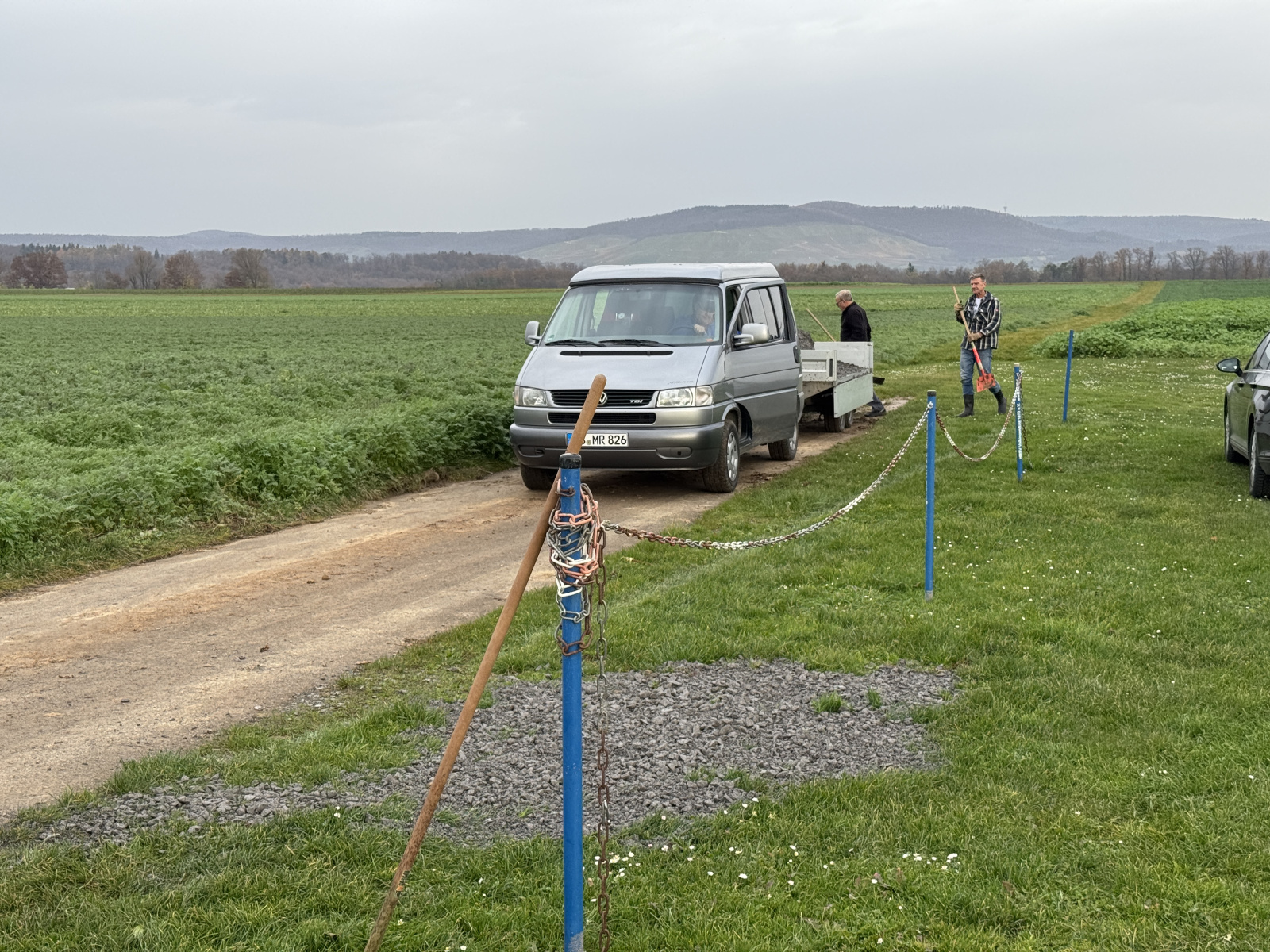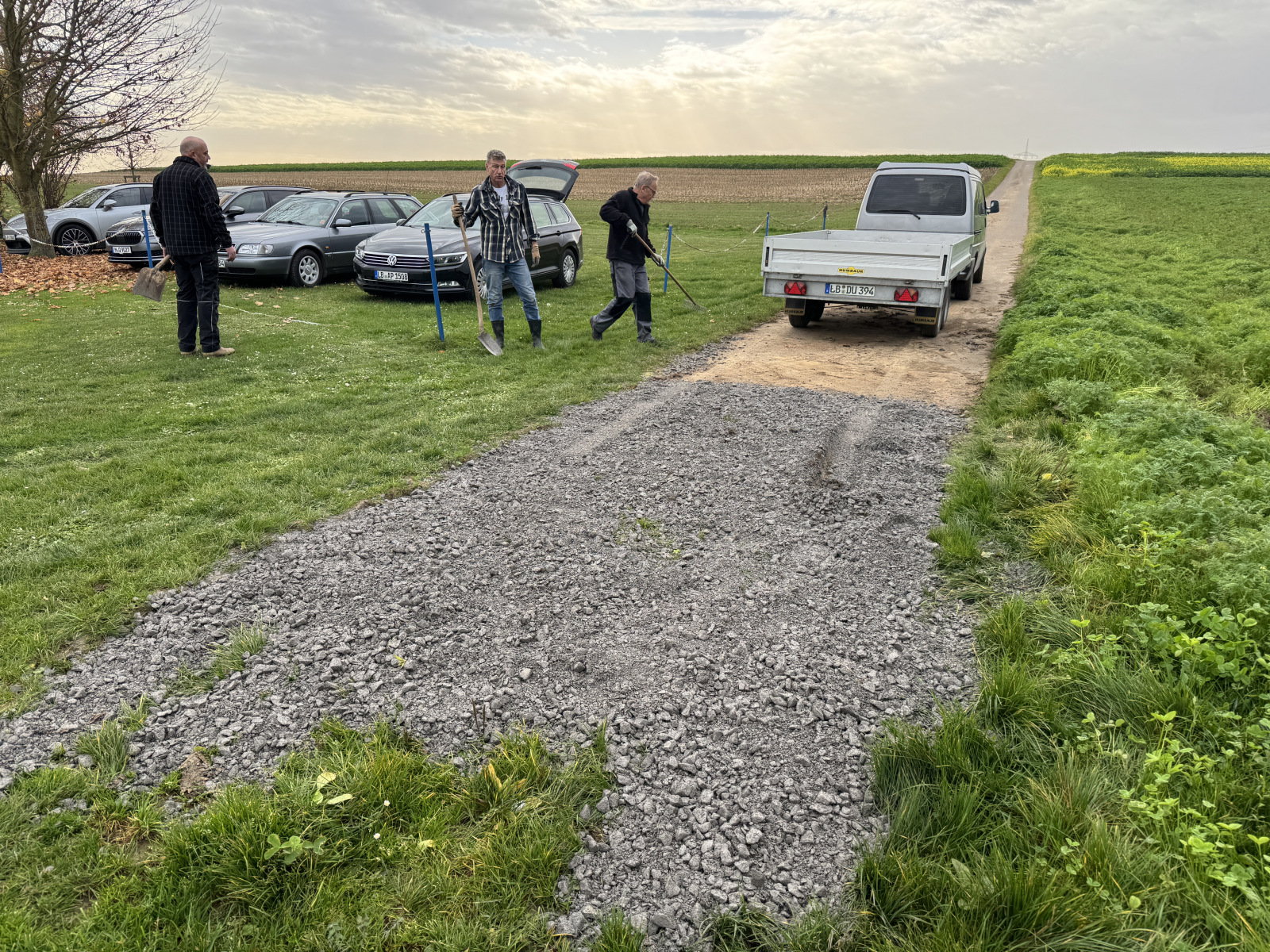 Ein wichtiger Schwerpunkt war die Ausbesserung der Schlaglöcher entlang der Zufahrtswege. Durch Regen und starke Nutzung hatten sich mehrfach tiefe Mulden gebildet, die nun mit Schotter aufgefüllt und sorgfältig verdichtet wurden. Dank des engagierten Einsatzes sind die Wege wieder perfekt befahrbar und bieten eine sichere Zufahrt rund um das Gelände für alle Mitglieder, Spaziergänger, Radfahrer, Reiter und Besucher.