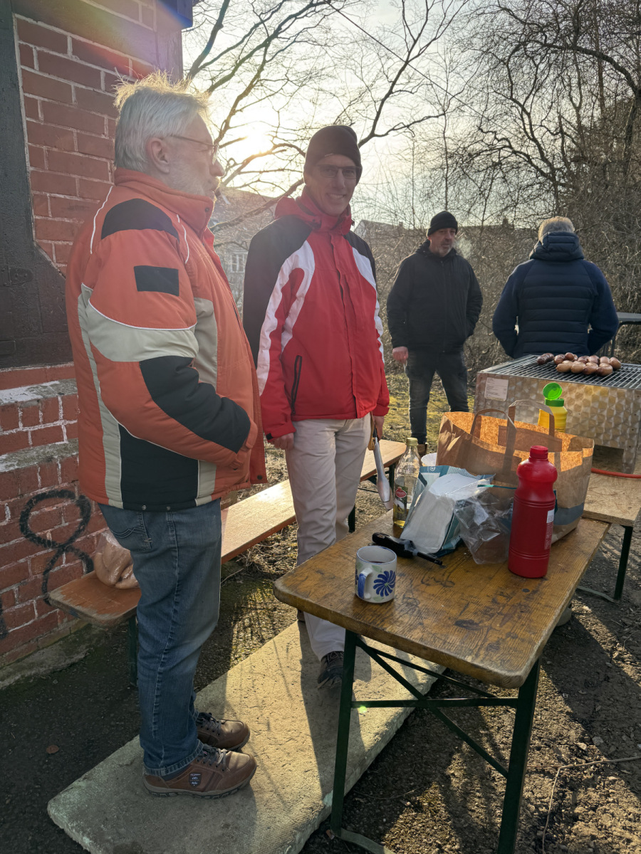 An den Stehtischen vor dem Vereinsheim wurde angeregt geplaudert, gelacht und über vergangene sowie kommende Modellflug-Projekte gesprochen. Wer es etwas wärmer mochte, fand im Bahnhöfle einen gemütlichen Platz im Inneren, wo ebenfalls eine gesellige Stimmung herrschte.
